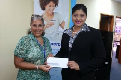 BOB’S GIFT --- Dominique Thompson, Marketing Manager, BOB (right) presents a cheque to Janet Johnson, Chairman of the International Cultural Festival (ICF) to assist with the purchase of wrist bands for the Festival. As the official Bank of the ICF, BOB is providing banking services in the form of a cashless environment for this year’s Festival. (BOB Photo)